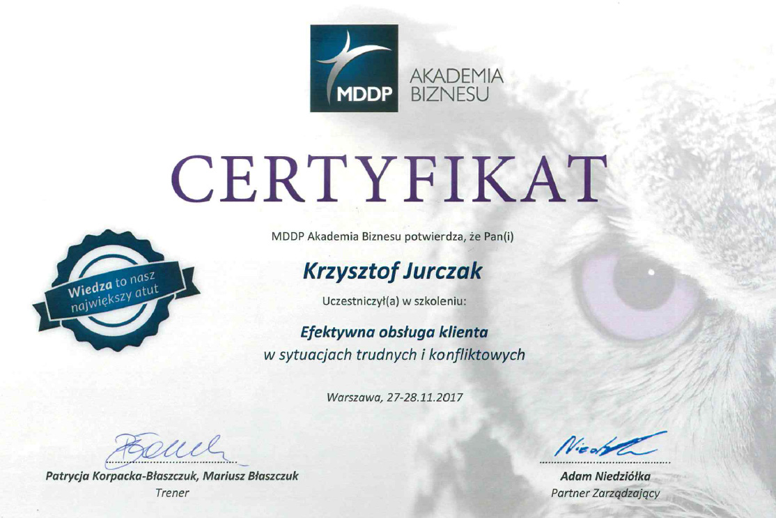 Stawiamy na fachowy personel, mocno inwestując w to, by pracownicy dysponowali szeroką wiedzą o produktach, technologiach, jak również zdolnością rozumienia potrzeb klientów (pracowników klienta). Korzystamy z profesjonalnych szkoleń zewnętrznych oraz prowadzimy szkolenia wewnętrzne – jak wiadomo nowo przyswajana wiedza wyparowuje, jeśli nie jest utrwalana. W realnych sytuacjach wypracowujemy najskuteczniejsze praktyki i metody pracy, robimy to z aktywnym udziałem pracowników. W ten sposób kreujemy ambasadorów marki – najlepszą „wizytówkę” firmy i jej rekomendację na rynku.